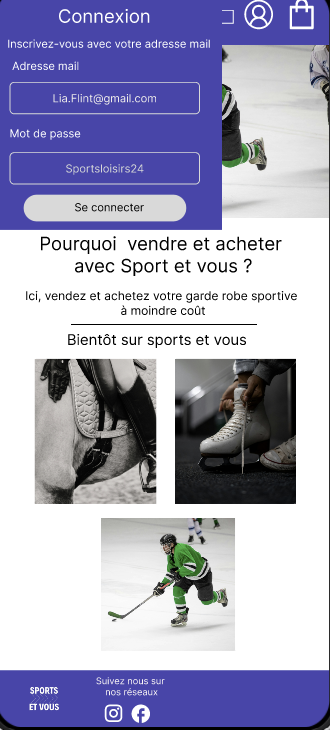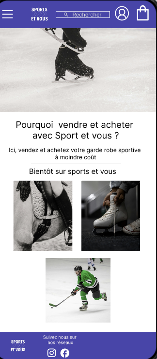 Pour mon projet de fin d'étude, j'ai crée la maquette du site web de "Sports et Vous", une plateforme pensée comme un Vinted du sport, destinée aux particuliers et aux professionnels souhaitant acheter ou vendre du matériel sportif de seconde main, mais toujours de qualité.